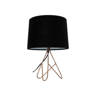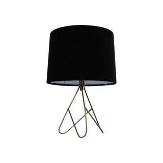 The Belira Table Lamp offers a modern design that can fit seamlessly in most home decors. The base of the Belira provides the contemporary character with a metal bar curved and shaped to make for an attractive and sturdy lamp foundation. The black traditional drum style lampshade is a pleasing contrast to the base, which comes in antique brass or copper.
