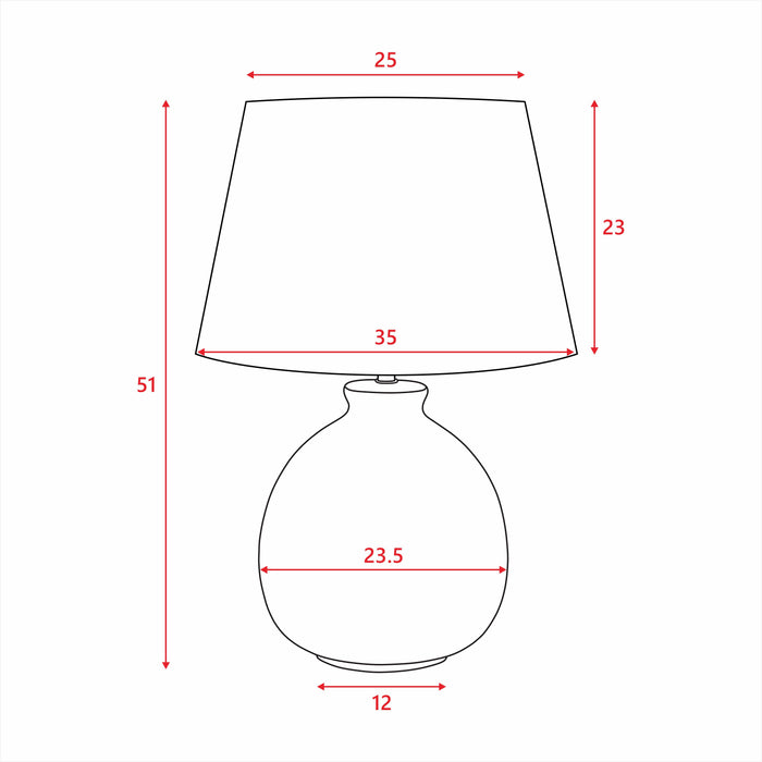 The contemporary look of the Candy Ceramic Table Lamp makes it a statement piece in your home. With a durable ceramic rounded base, a simple linen shade and an eye-catching leaking paint detail. Perfect for the living room or bedroom. Indoor use only. Compatible with E27/Max 60W light bulbs.