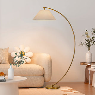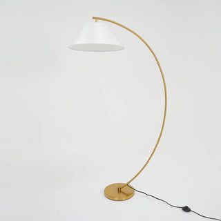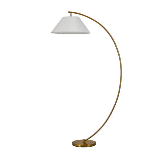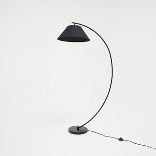 A classic over-arch floor lamp with an update. Paired with a shallow white or black rayon PVC shade, this floor lamp will happily sit in both a modern and more traditional interior. The floor lamp delivers focused lighting wherever you need it. The metal stand is gently curved for an elegant silhouette. A fabric shade helps create a soft, welcoming glow.