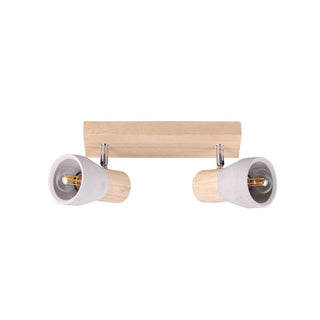 The Rosalyn 2-Light Spotlight seamlessly combines a trendy mix of grey concrete shades and a wooden frame, offering a stylish blend of Scandinavian and industrial aesthetics. Featuring adjustable, rotating, and swiveling lamp heads, this ceiling light ensures versatile and flexible illumination for any space. The natural wood and concrete materials create a modern yet timeless design highlight, making it a perfect addition to contemporary interiors. Ideal for adding character and functional lighting, the Rosalyn spotlight brings warmth and sophistication to your home.