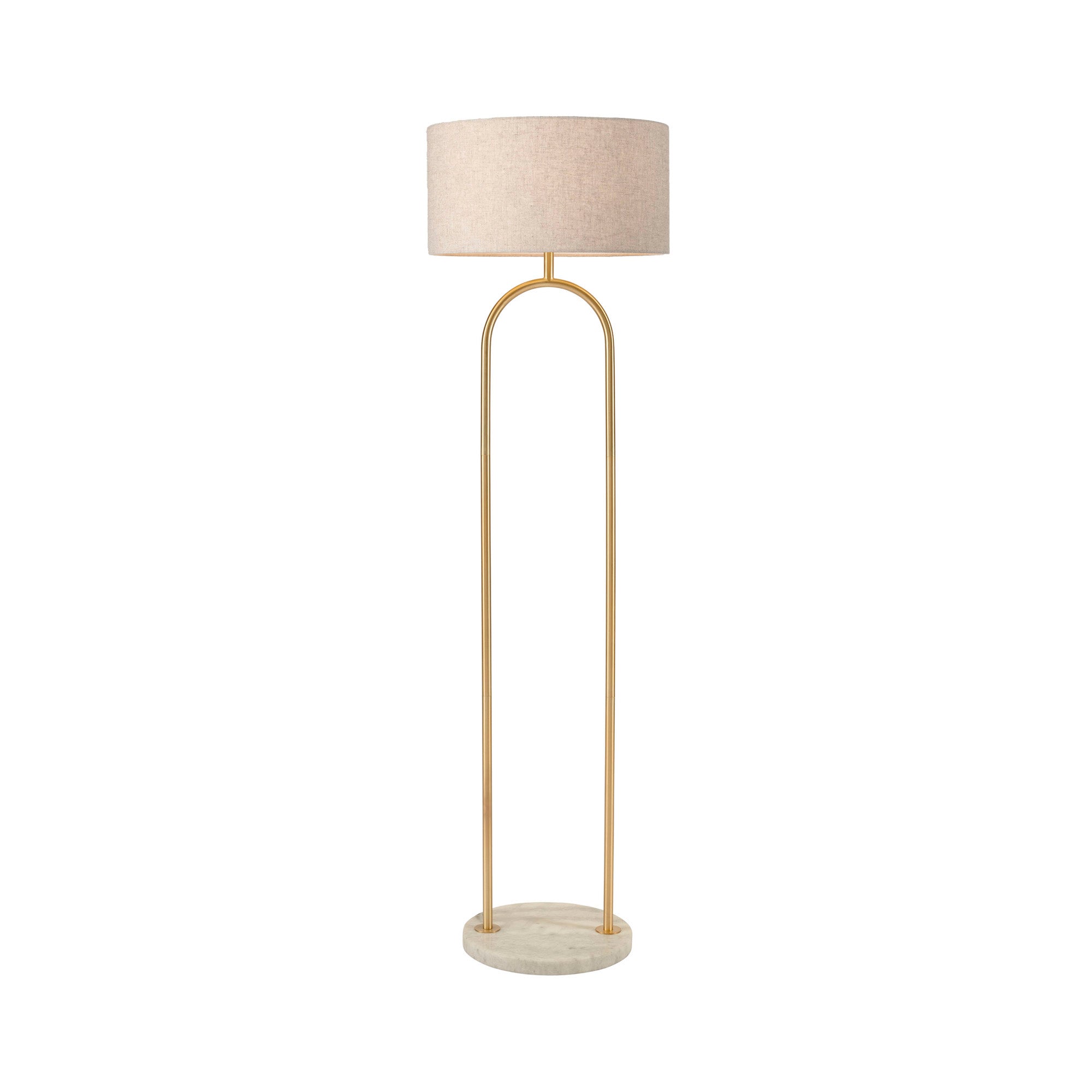 The Banks Floor Lamp comes in Satin Brass with a White Marble base and Flax Linen Shade. Bringing a sense of elegance and permanence to your interiors.