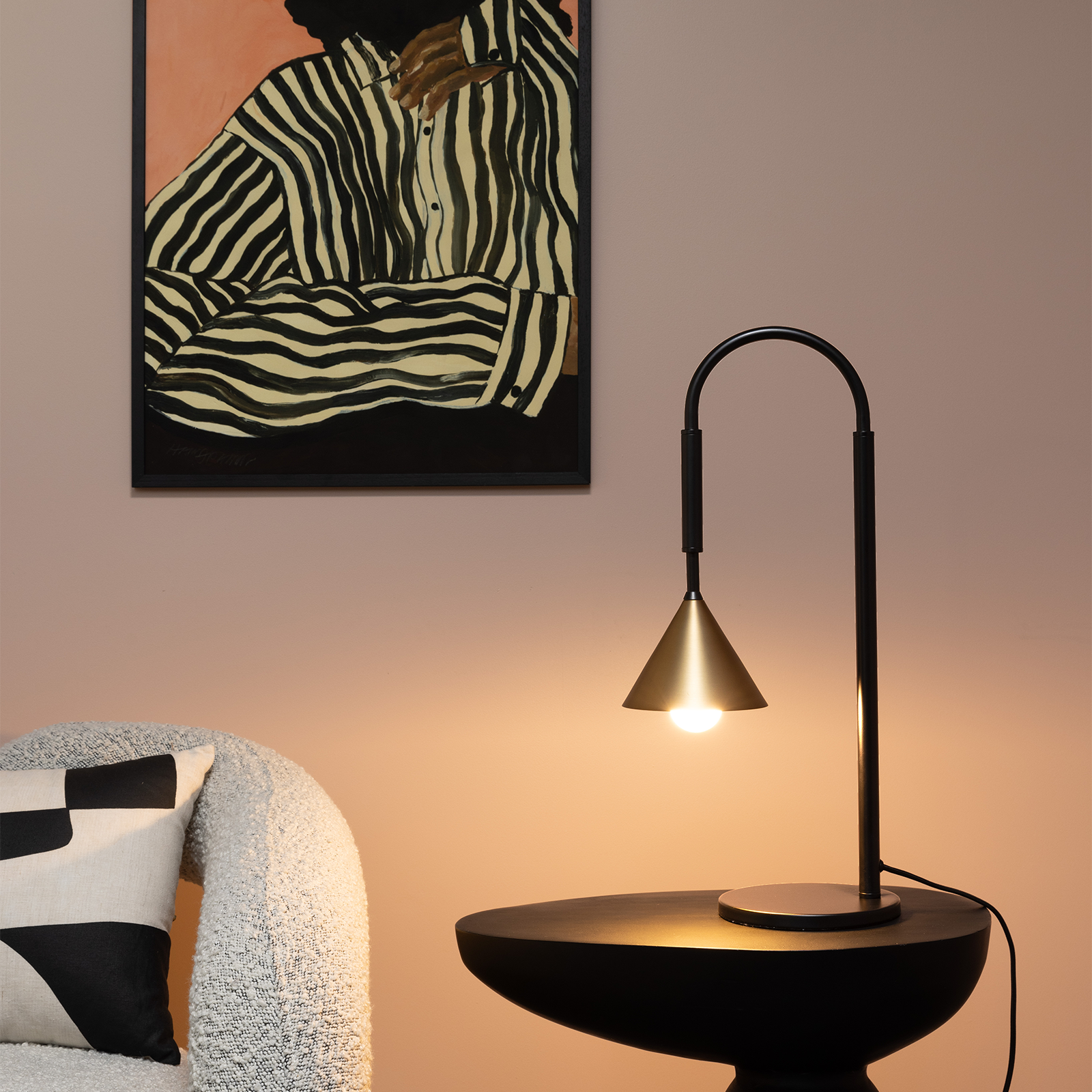 Absolutely love this lamp, it looks exactly like the picture and the quality is great. I was worried that it wouldn’t give enough light with the black shade but it’s absolutely fine to light up a room softly in dark mornings and evening.