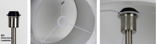 This 43cm cotton hardback shade is ideally suited for a floor lamp or large table lamp base. The 43cm shade ring suits an E27 lampholder, but can be reduced to suit a B22 lampholder using our shade adapter ring (OLA16/SHADE available seperately). White lined.