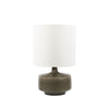 The FAWN ceramic table lamp comes complete with a fabric drum shade. This designer lamp is perfect for a living room or hallway table in a mid-century styled home. The on/off switch is located on the cord.