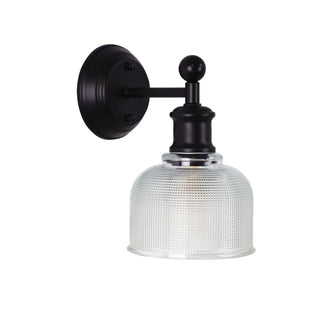 The subtle industrial styling of the Brighton wall light makes it well suited to many applications. The satin black metalware combines well with the obscure glass finish.