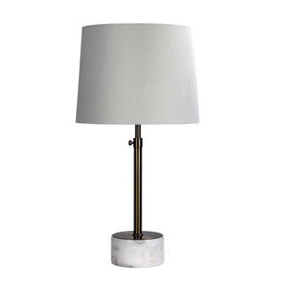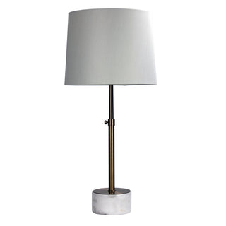 Finished in antique brass and marble, the UMBRIA lamp is a stylish addition to your contemporary, Scandi home. Our UMBRIA table lamp is height adjustable, allowing you to set the lamp at the ideal position for your bed-side, or living room. Supplied with a white linen 13inch hardback shade (white inner for maximum light). The switch is located conveniently on the clear cord.