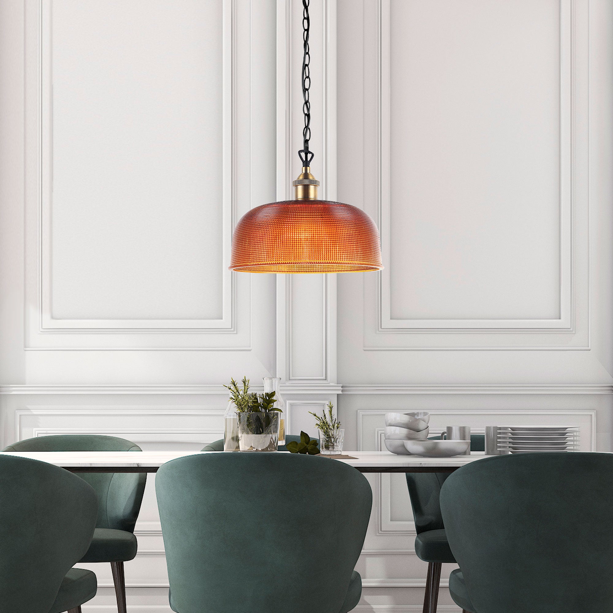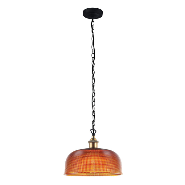 MAISON.27 halophane glass shaded pendant on a black and antique brass chain suspension. Ideal compliment to our Industrial Vintage lighting range. Lovely solid glass, also available as a 150mm shade.