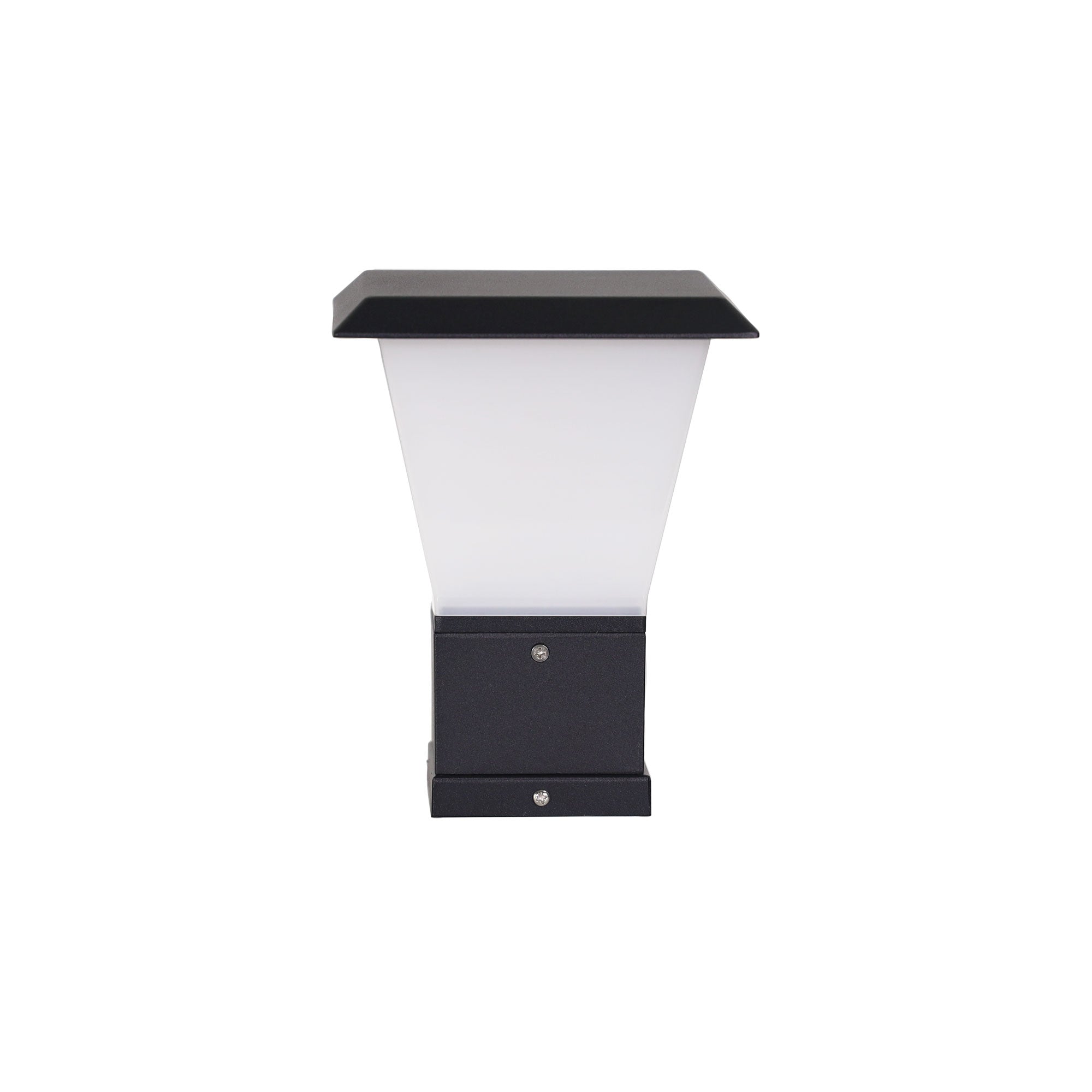OBLIK pillar mounted outdoor light – designed for use on top of a pillar or wall. Black metalware with opal PVC diffuser.