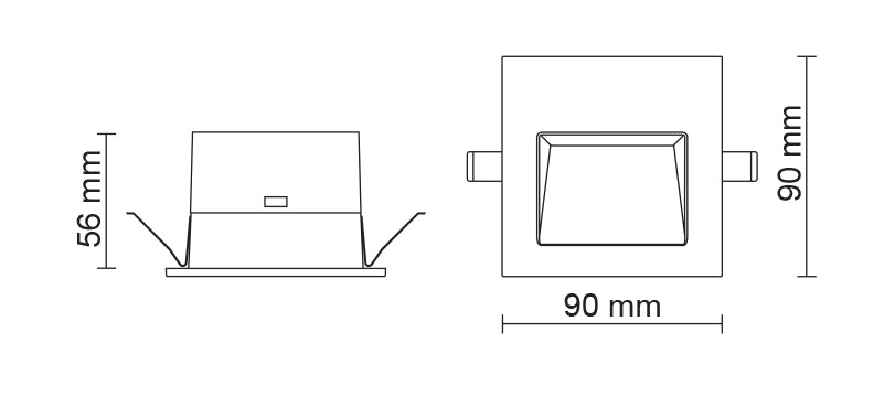 Dimensions LWH: 90 x 90 x 56mm, (cut-out 77 x 77mm)