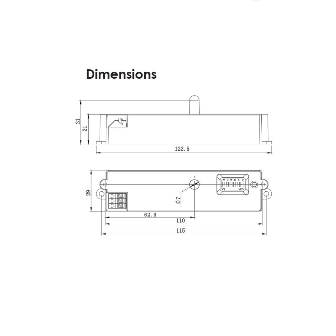 Power source input: 12-24V DC, output 0-10V DC, 30mA sinking current