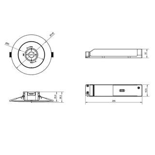 Polycarbonate body profile, double insulation, standard trim Ø95mm utilising a Ø70mm cut-out and the kit includes a Ø145mm adaptor ring ( Ø130mm cut-out) for retrofit applications.