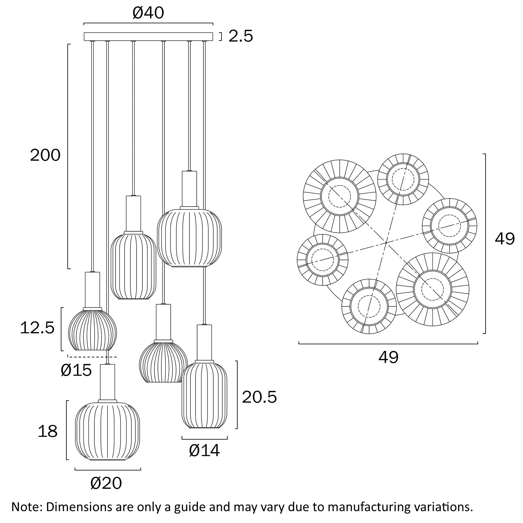 - Fixture Diameter (cm): 49.00