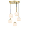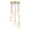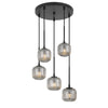 This early century ribbed barrel glass gives a minimalist allure and sleek style for any space in your home. The Bobo collection is best illuminated with a LED twinkle globe accentuating the ribbed surface of the shade. The family includes a 1 light pendant, 1 light wall lamp, 1 light table lamp,2 light table lamp, 4 light bar pendant, 5 light round pendant and 10 light round pendant. Available in Antique gold with opal matt shade or black with smoke.