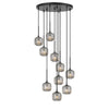 This early century ribbed barrel glass gives a minimalist allure and sleek style for any space in your home. The Bobo collection is best illuminated with a LED twinkle globe accentuating the ribbed surface of the shade. The family includes a 1 light pendant, 1 light wall lamp, 1 light table lamp,2 light table lamp, 4 light bar pendant, 5 light round pendant and 10 light round pendant. Available in Antique gold with opal matt shade or black with smoke.