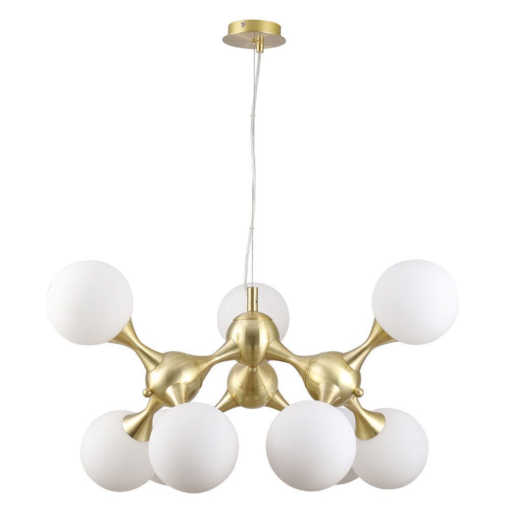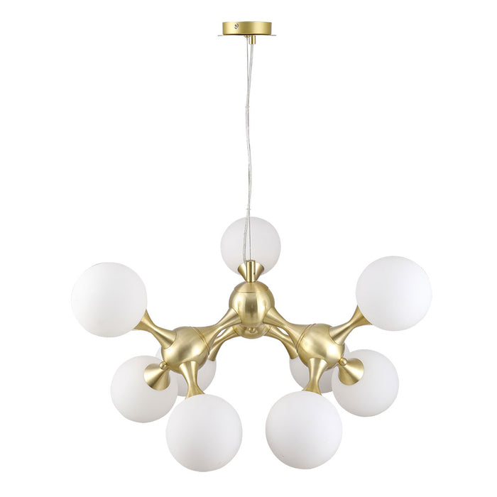 The bold Cosmic pendant has the organic appearance of linked dna. Extremely simple, yet maintaining a sophisticated look that will add a striking presence anywhere it is used. Available in Brass with opal matt or Black with smoke glass.