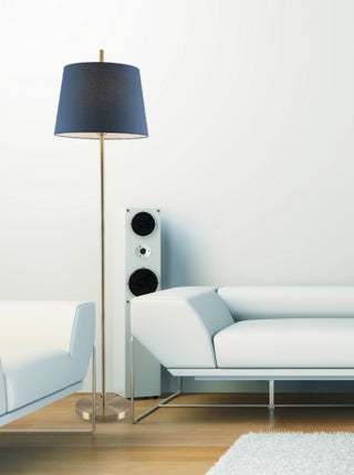 An opulent look by its finish, yet elegant and simple, the Dior features an antique brass finished circular base and column stand topped with a textile shade in blue or white. Perfectly paired to the Nordic trend for added depth and mood, or to a Deco inspired space for added ambiance. Also available as Table Lamp.