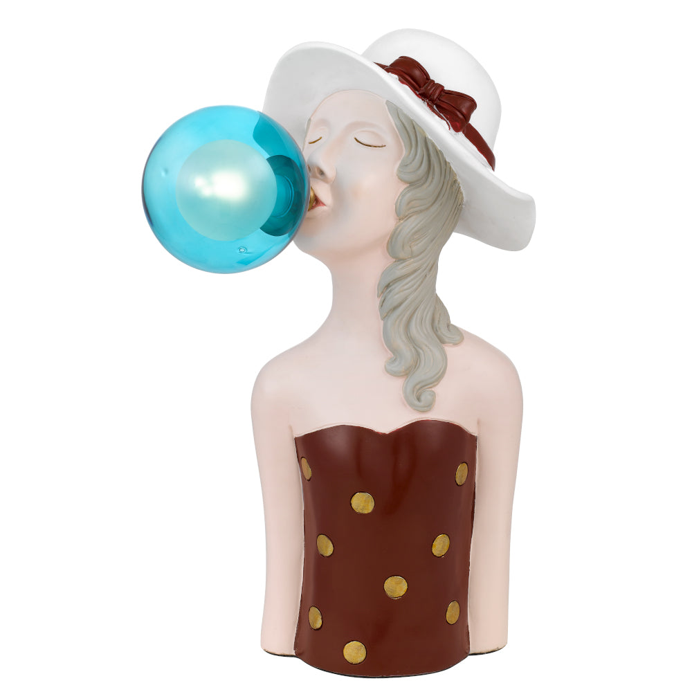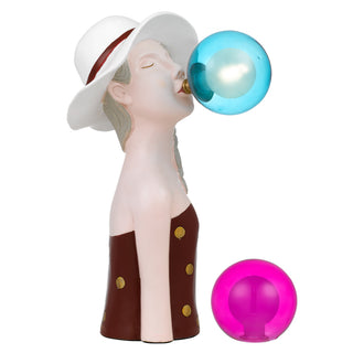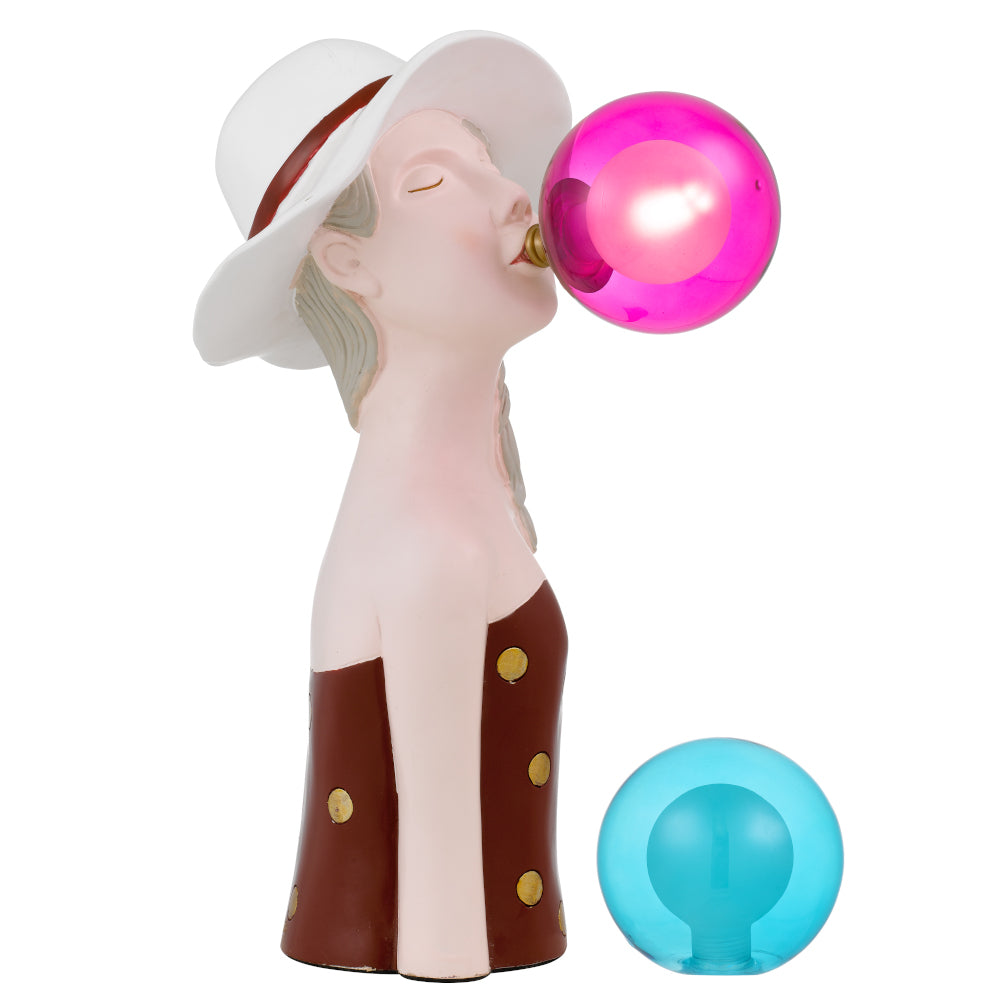 The Martina table lamp is a fun artistic expression statement. The bubble gum glass is interchangeable, either blue or pink and the main body is made from polyresin and hand painted.