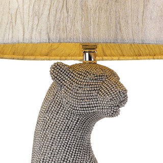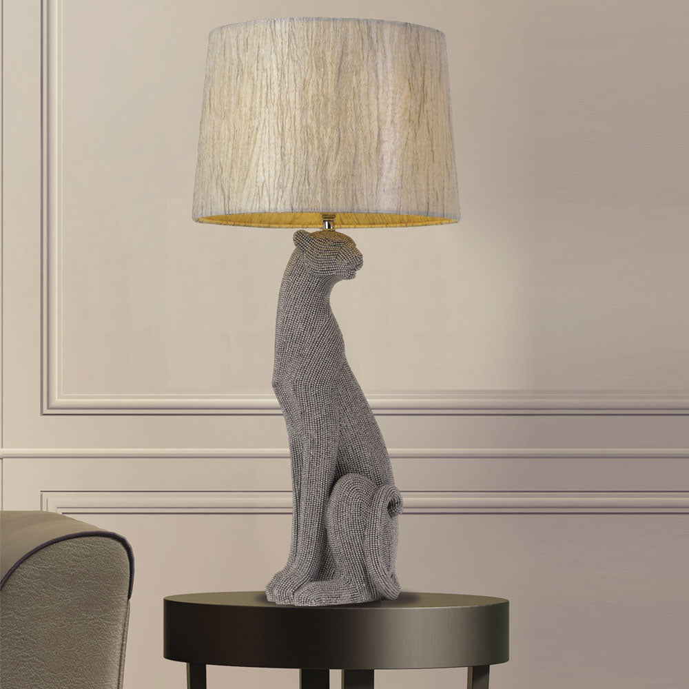 The tall and elegant Nala table lamp will become the center of your living space. This spectacular feline sits proud and elegant. The body of Nala is finished in either black or silver diamante.