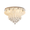 The Odessa is a classic, extravagant close to ceiling fixture. Embossed lass leaves are hand screen printed and draped with clear optic crystal shapes. The stainless steel ceiling plate reflects the light source to provide a spectacular lighting effect. Available in 2 sizes.