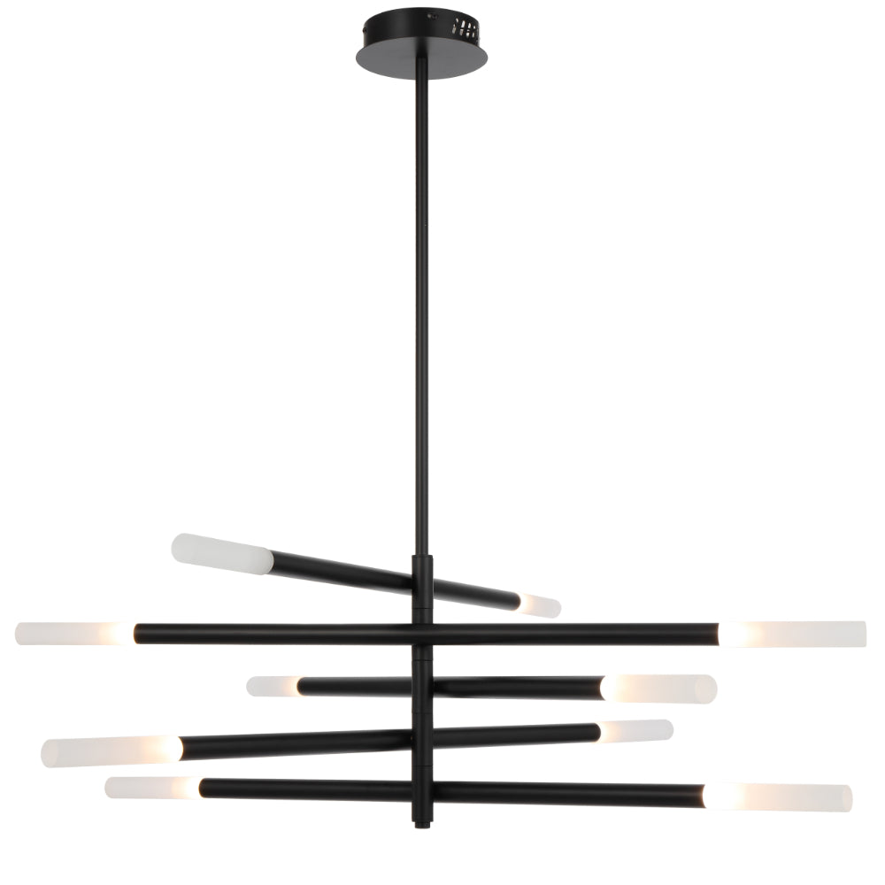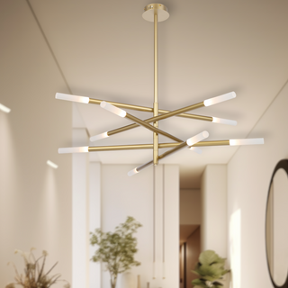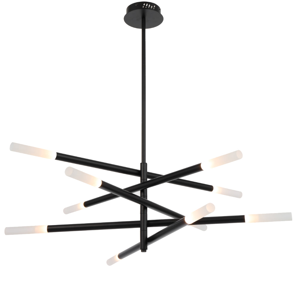 The Pinta Pendant Light is a modern and captivating fixture, available in 8 or 10 light options. Featuring integrated LED rods that emit a warm 3000K color temperature, it is constructed from durable iron and available in both gold and black finishes. Perfect for adding a touch of contemporary elegance to any space.