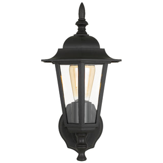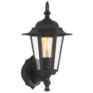 The Upton exterior light, available as a wall light or close-to-ceiling fitting, features a lightweight design and a sleek black finish. With an IP44 rating, it ensures durability and protection in outdoor settings.