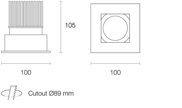 - Single recessed LED downlight with square trim