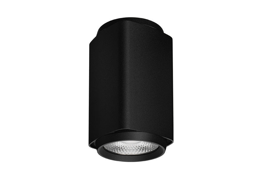 - Surface mounted square LED downlight with high efficiency collimator lens; available with optional honeycomb lens