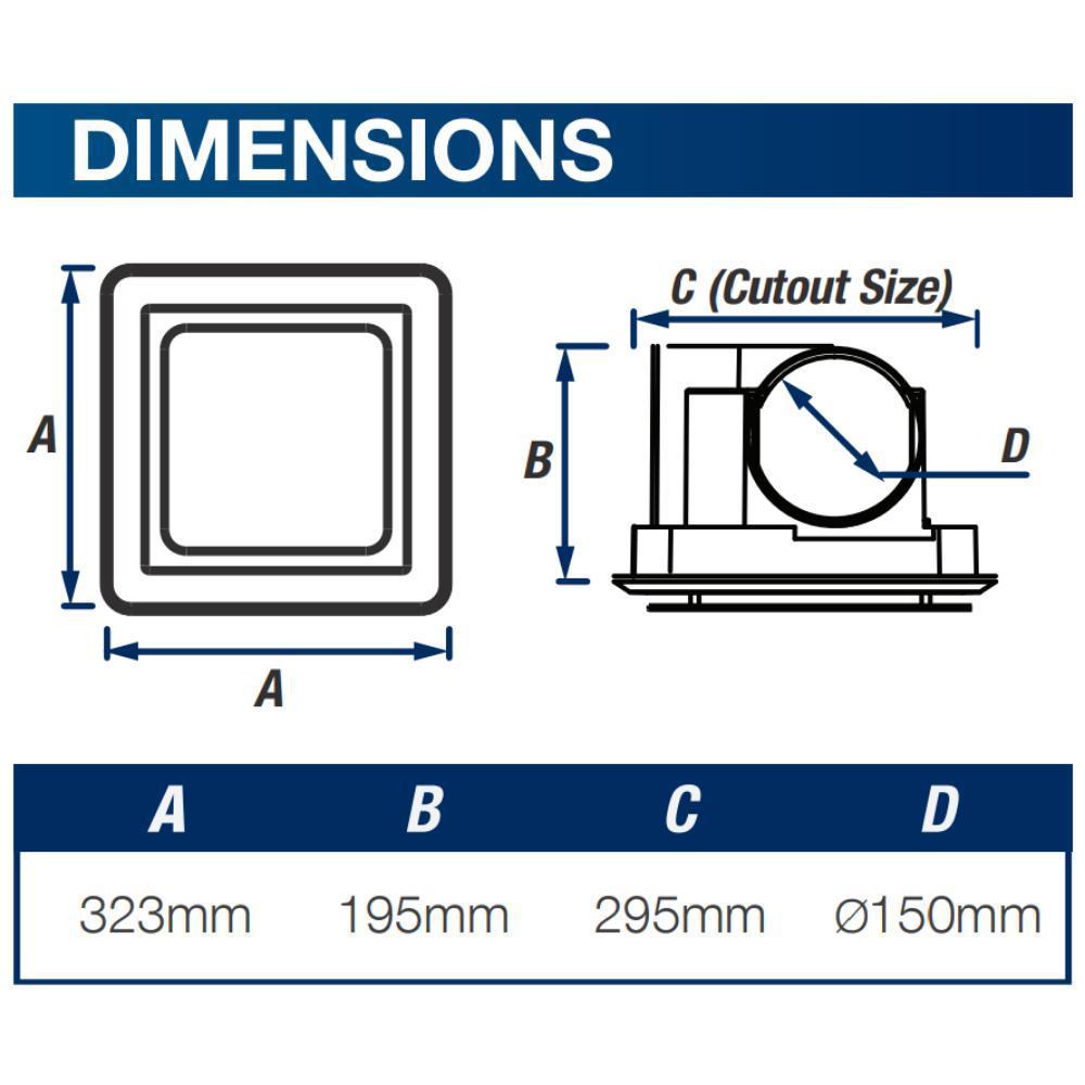 Universal side ducted exhaust fan with easy clean removable white square fascia, improved motor design with higher airflow. Built in draft stopper. AC plug and lead included.